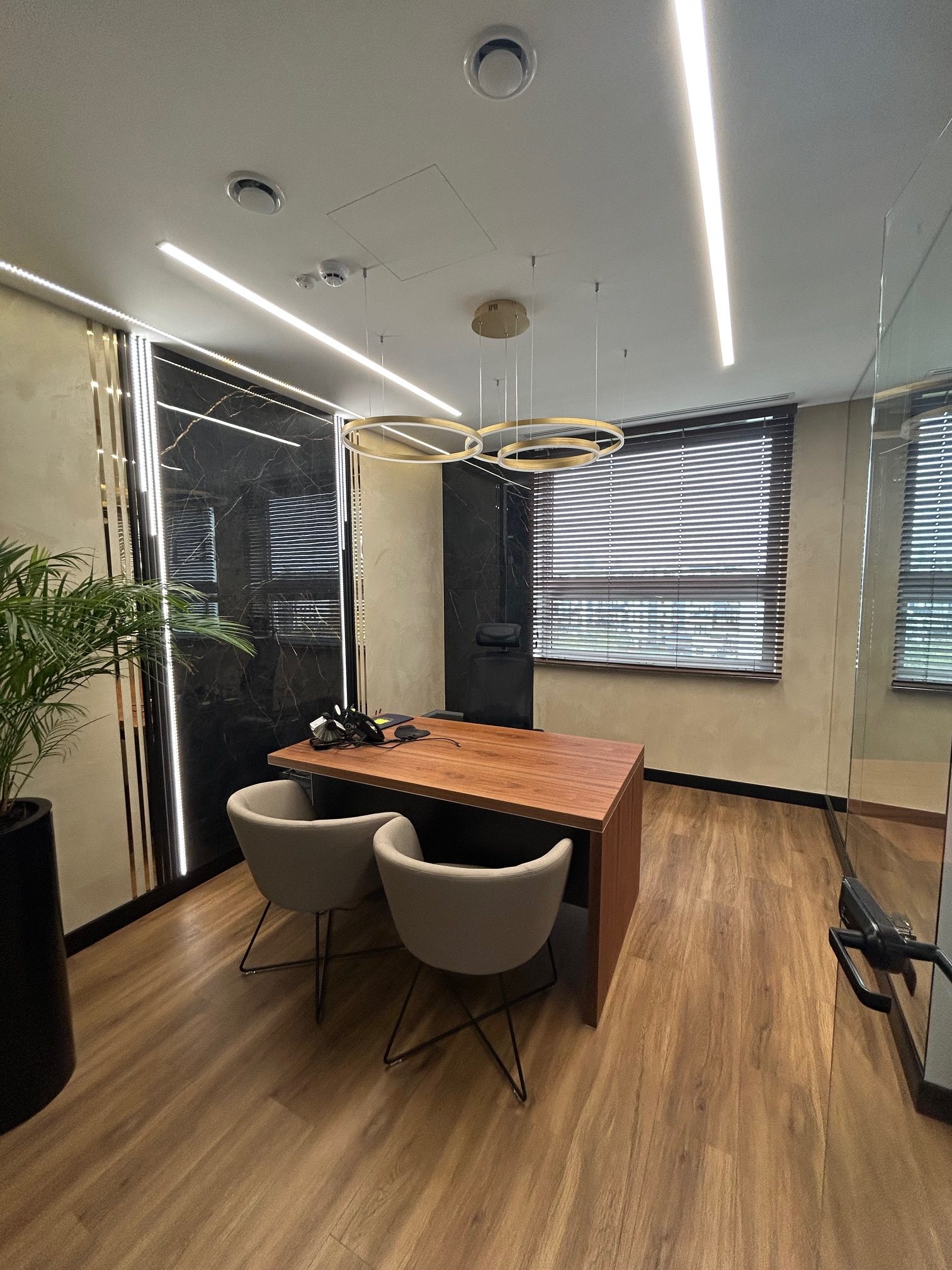 Lokal o powierzchni 283 m² mieści się na trzecim piętrze nowoczesnego budynku z 2002 roku. Wyposażony w klimatyzację, windę i meble, jest gotowy do użytku.